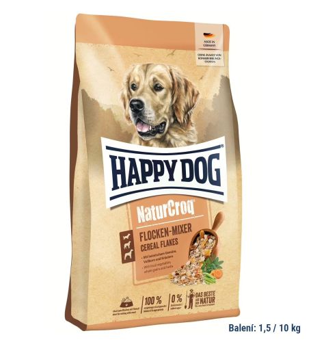 Doplnkové krmivo Happy Dog NaturCroq Flocken-Mixer obsahuje vysoko stráviteľné šupinaté vločky, celozrnné vločky, zeleninu a bylinky a je obohatené o všetky nevyhnutné vitamíny a minerály. Mrkva a hrášok poskytujú dôležitú vlákninu a obsahujú aj karotén a rastlinné bielkoviny. Náš príkrm NaturCroq Flocken-Mixer ponúka perfektný doplnok k akémukoľvek mäsovému pokrmu a psom zaisťuje druhovo vhodnú a vyváženú potravu s mäsom.